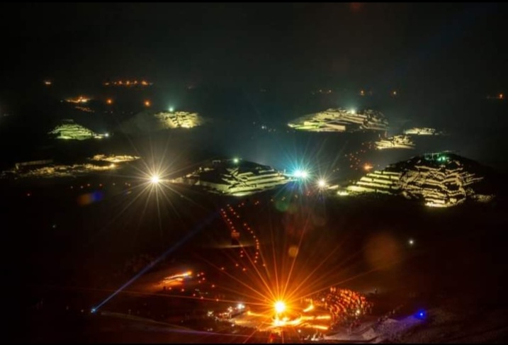 «Llegamos a la ciudad de Caral antes de que anocheciera, el cielo pincelado en tonos rosa resaltaba con una Luna en creciente tan brillante y en contraste los cerros imponentes en contraluz, un paisaje hermoso; mientras tanto en el recinto arqueológico visitantes locales y extranjeros estaban haciendo fila para poder apreciar el Caral Raymi y de pronto se hizo noche y allí estaban las pirámides iluminadas que literalmente eran un espectáculo».