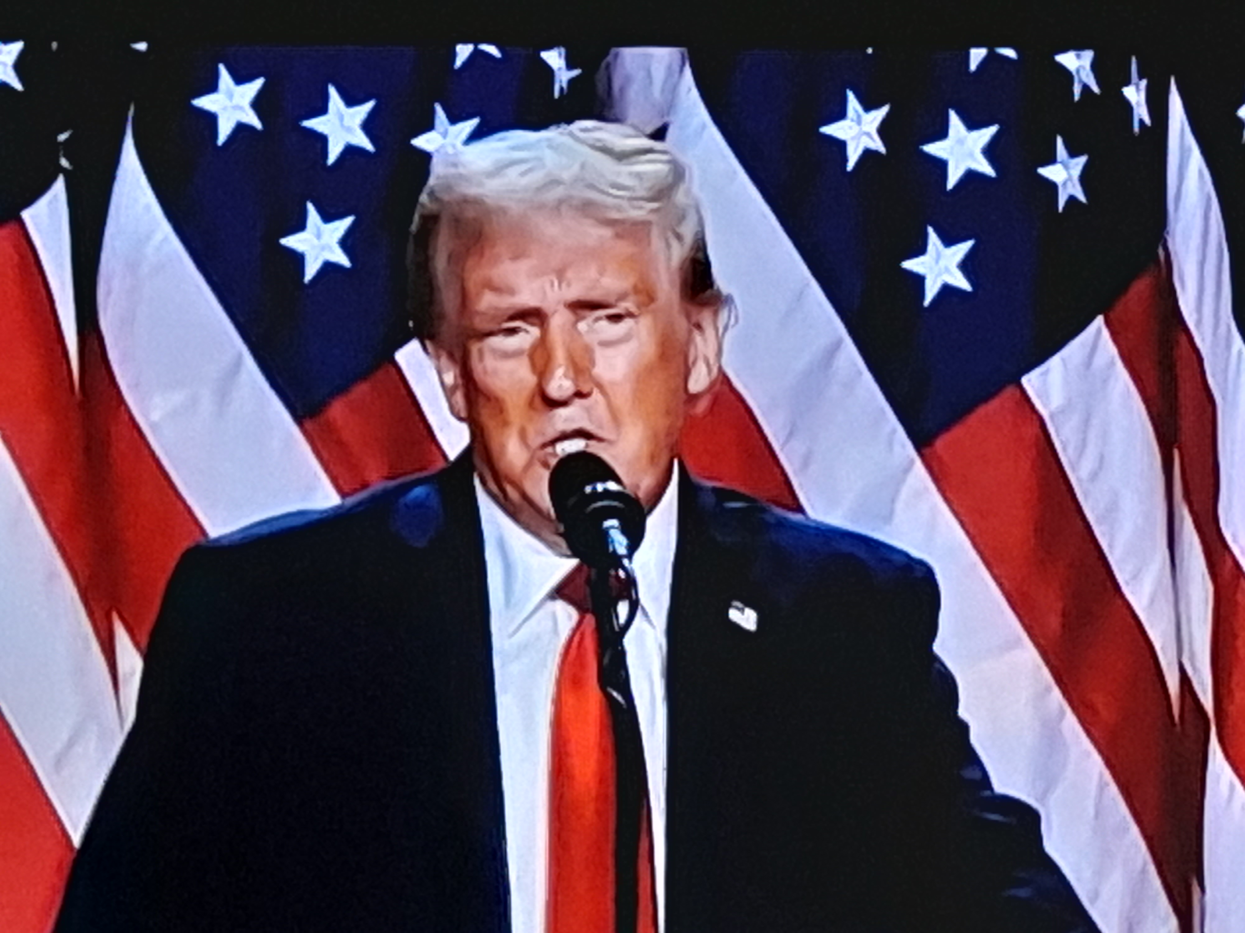 «Quiero agradecer a todos, este ha sido el movimiento político más grande, vamos ayudar a que nuestro país sane, urgentemente vamos arreglar la frontera, superamos los obstáculos, es una victoria política que nuestro país no había visto antes, voy a luchar por ustedes por sus familias, no voy a descansar hasta entregar un Estados Unidos fuerte y seguro, ganamos el voto popular, es un gran sentimiento de amor, vamos hacerles muy felices, hemos recuperado el control del Senado, vamos a conservar el control de la Cámara de Representantes», las primeras palabras Donald Trump.