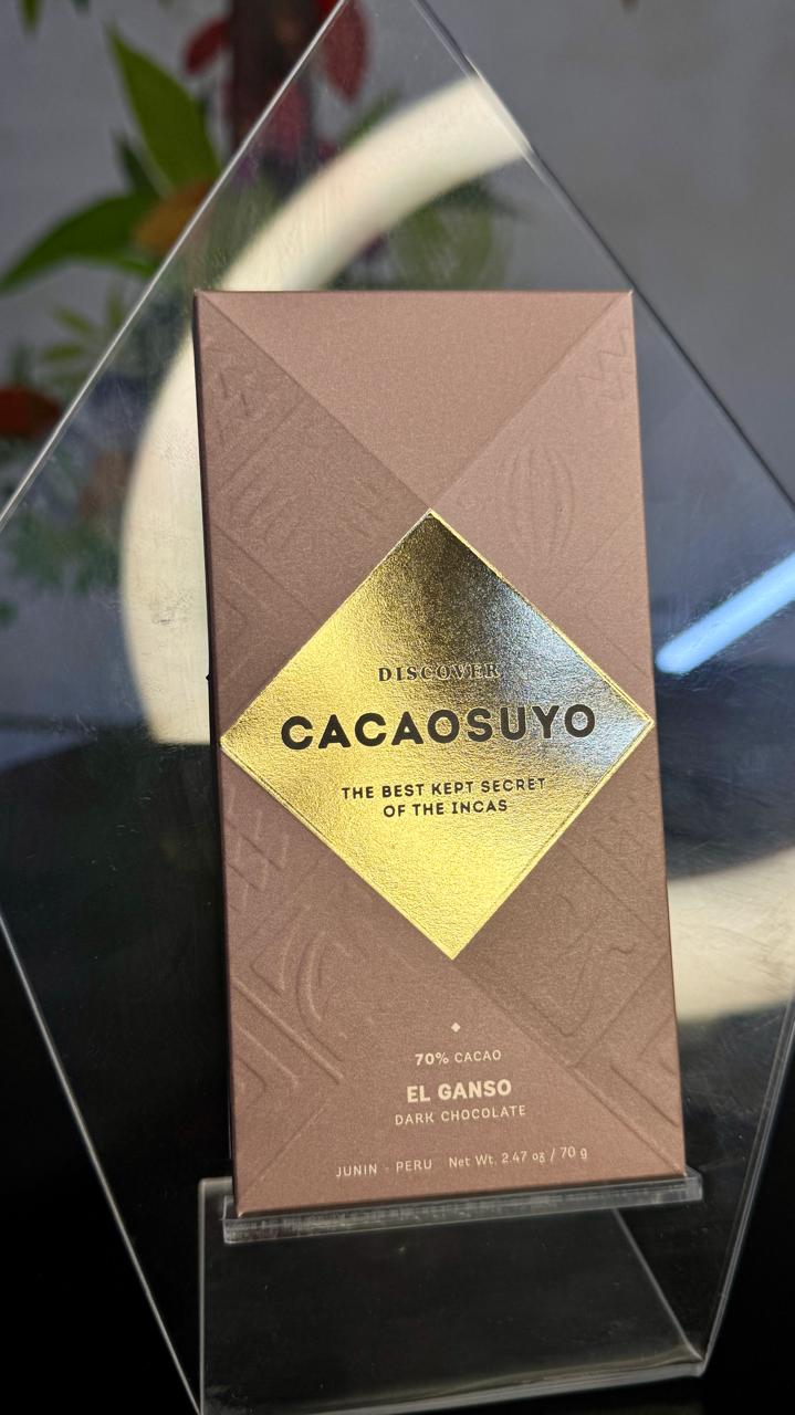 La chocolatera peruana Cacaosuyo desde su fundación en el 2012 ha tenido una misión clara: revelar los tesoros ocultos del cacao peruano; a lo largo de los años, ha conquistado los paladares y jurados más exigentes del planeta, obteniendo el Oro Mundial con cacaos de cuatro regiones emblemáticas del Perú: Amazonas (Lakuna, 2019), Cusco (Cuzco 80, 2020/2021), Piura (Piura Select, 2022) y Junín (El Ganso, 2025).